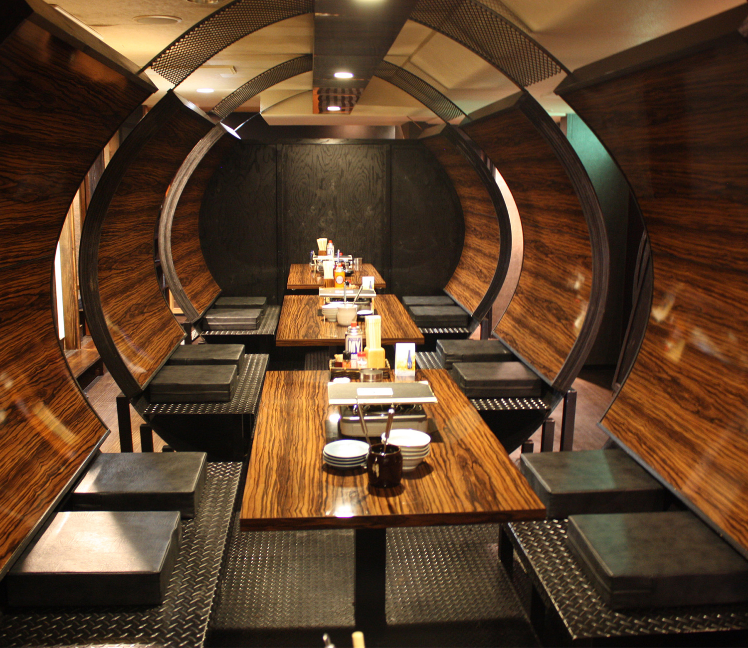 正ナカの内観は普通のお店と一風変わった雰囲気。店内に入るとまず目に入ってくるドーム席はインパクト大!